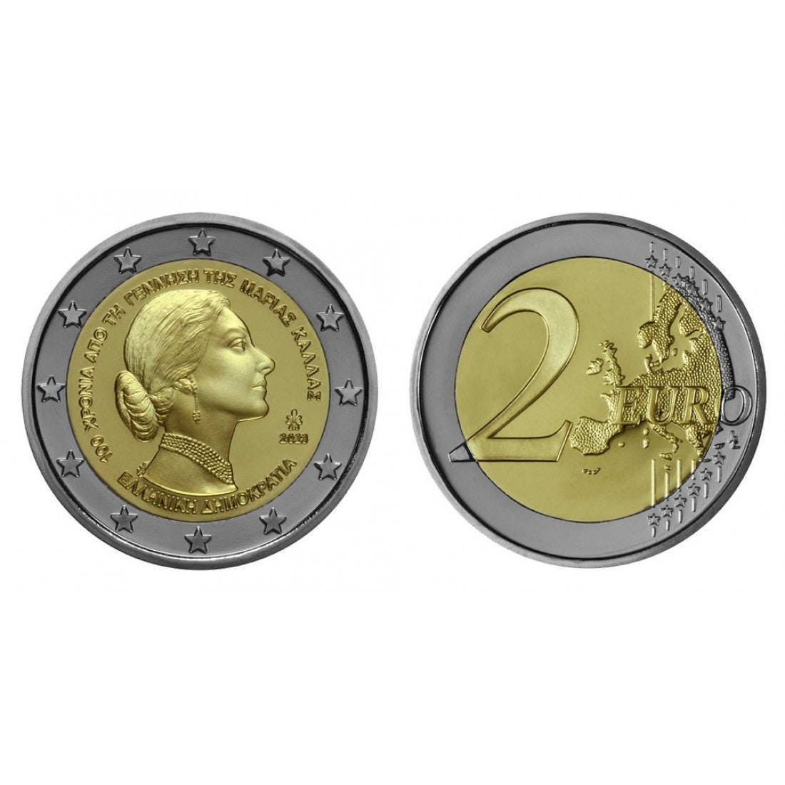 ΕΛΛΑΣ - 2 ευρώ 2023, Proof, ΜΑΡΙΑ ΚΑΛΛΑΣ, 100 χρόνια από τη γέννηση της.